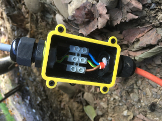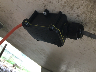 Mittlerweile wurde die Stecker ersetzt und die Verbindung der Kabel in einer wasserdichten Box eingeschlossen (siehe Bilder). Dadurch wird das Kurzschluss-Regime beendet und die Versorgungssicherheit mit Strom sowie Internet ins Hühnerhaus sichergestellt.